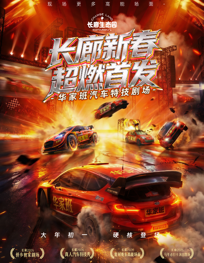 汽车特技中飞驰人生,中国顶尖汽车特技团队—华家班空降长廊,热血开演!惊险刺激的高难度特技,沉浸式感受速度与激情的碰撞,点燃属于侨乡的速度狂欢!