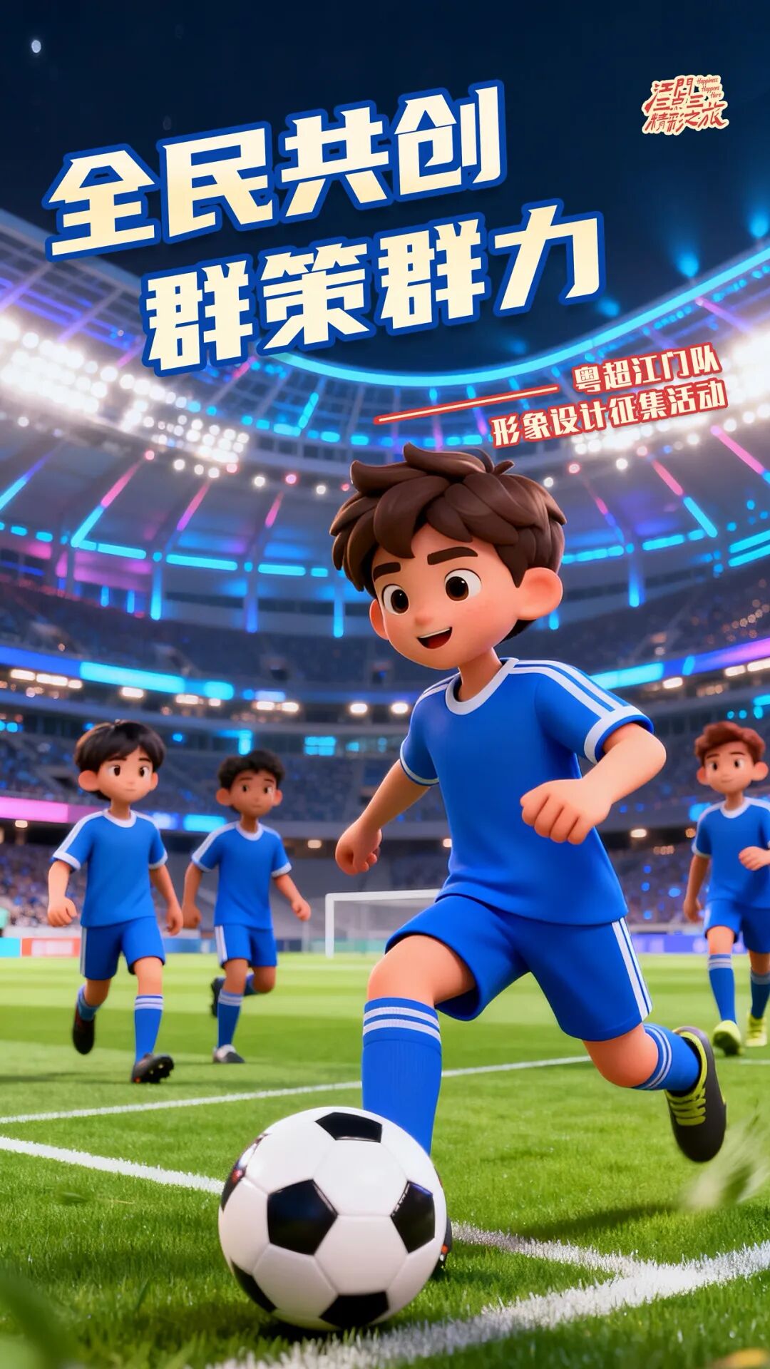 设计要求:队歌要求以粤语为创作语言,旋律要昂扬大气、节奏明快有力,歌词要紧扣“江门”“足球”等核心元素,展现球队奋勇争先、为家乡争光的信念,易唱易记、适合赛场合唱。