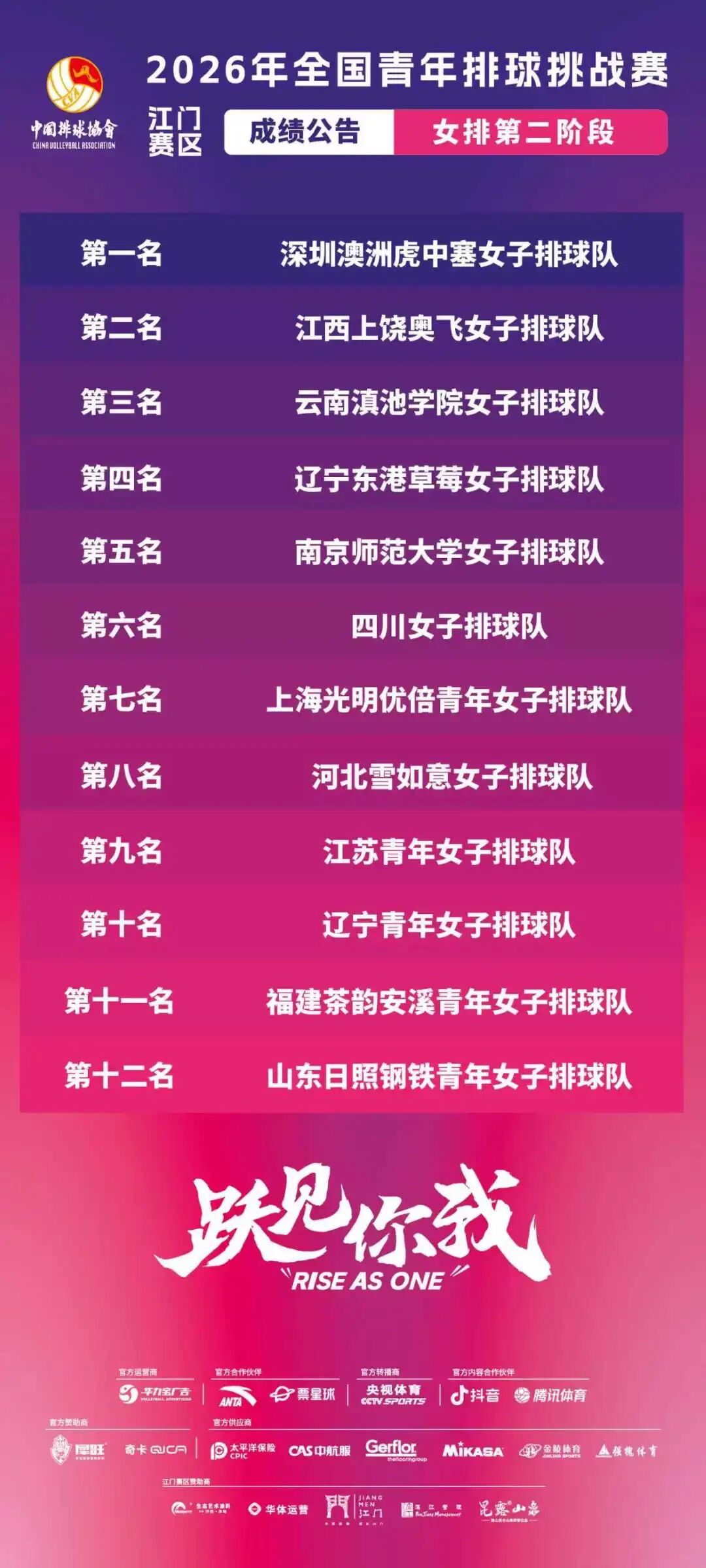 在为期9个比赛日的激烈角逐中,来自全国的青春女排力量汇聚于此,经过47场比赛,本次赛事各队最终排名全部确定。