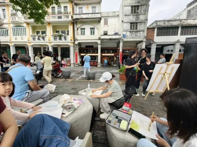 古旧骑楼、酷炫机车、激情歌手相映成趣,是游客眼中的靓丽风景,引来众多江门本地画家、成为其笔下的鲜活素材,轰鸣的引擎与市井的闲适碰撞融合,为市民与游客清明假期增添了独特的游玩体验。