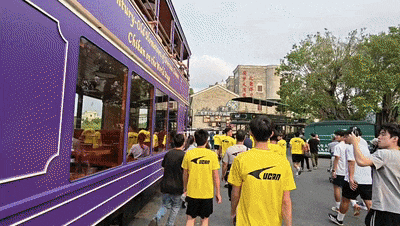 随后,队员们打卡赤坎华侨古镇,开启一场复古侨乡奇遇。乘坐铛铛车穿梭于3公里长的骑楼长廊,漫步骑楼老街,感受昔日商埠的繁华与侨乡生活的烟火气,沉浸式体验侨乡文化的独特魅力。