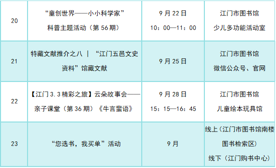 金秋书香 | 江门市图书馆九月文化活动预告