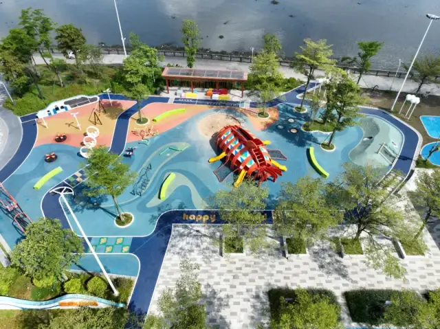 其中,面积达1630平方米的儿童乐园是长廊的核心亮点,园内配备了大鱼滑梯、迷你攀岩点、儿童健身器材等多样化儿童设施,为不同年龄段儿童打造了一个安全益智的活力天地。