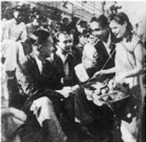 歌姬捐输:“七七”事变一周年前夕,“四界救灾会”为了充分发动群众,深入到当时著名的花街――福隆新街,向“歌姬”宣传民族大义,抗日之需,发动她们于“七七”纪念日那天捐输,并协助售卖“七七”纪念章。“歌姬”们听之动情,潸然泪下,对日寇的愤恨之情溢于言表,“七七”那天,歌姬踊跃倾其绵薄之力,支持抗战,除了捐出现款,还纷纷把珍藏的细软拿出。以后,歌姬还积极参加其他筹募活动,如义唱、献金等。她们还发起成立“花界救灾会”,单独开展筹募献金等抗日救国活动。