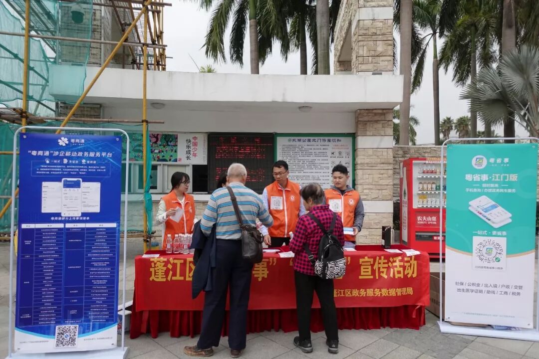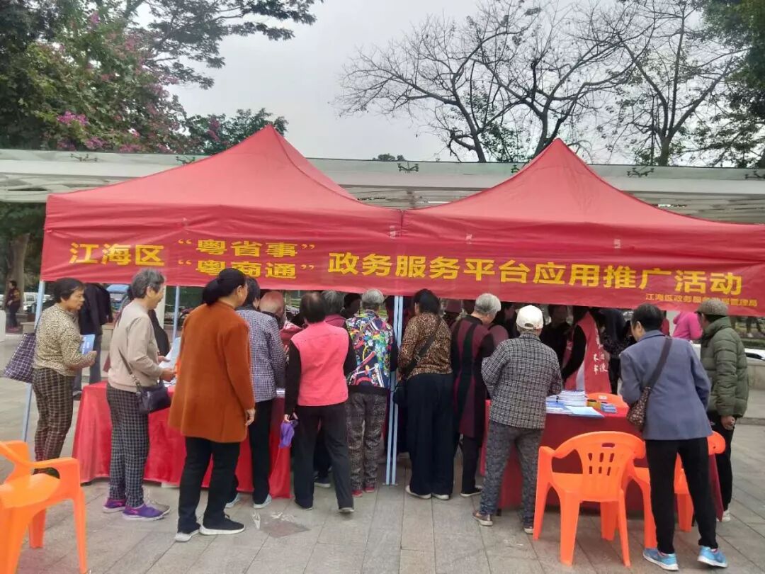 1月1日,江门市政务服务数据管理系统,三区四市联动推广,在全市人流集中的地点进行“粤省事”“粤商通”宣传推广活动,籍新年之际向市民送祝福,让群众体验“指尖上的便捷服务”。