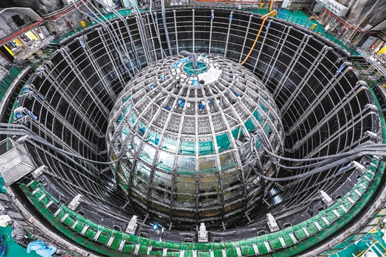 江门中微子实验室位于开平市金鸡镇地下700米深处,目前已经完成探测器不锈钢主结构和有机玻璃球升降平台安装,预计2024年底开始运行取数。该实验室建成后将捕获“幽灵粒子”中微子,续写我国中微子研究的辉煌。 刘悦湘 摄