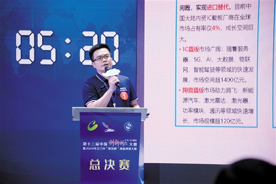 江门市浩远电子科技有限公司获成长组特等奖。图为该公司董事会秘书欧阳光在进行路演。