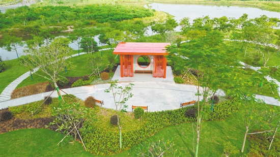 如今,蓬江区观澜湖公园的“同心林”内,上百棵紫花风铃木、凤凰木、白兰等岭南特色乡土乔木,经过近一年的生长,长势喜人,“同心亭”也成为周边居民休憩的好去处。