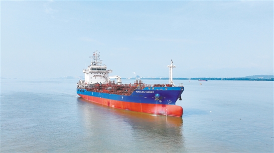 9月26日,7700载重吨油化船“HERCULES HARRIET”号顺利交付离港。