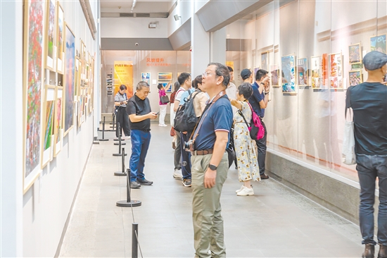 人们在江门市创建助力“百千万”主题摄影展驻足欣赏摄影作品。 江门市文明办供图