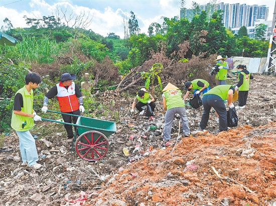 鹤山市青年志愿者分工明确,高效清理属地垃圾。