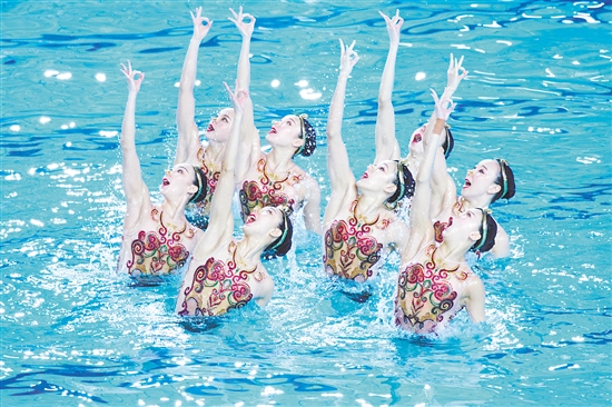 昨日上午,十五运会花样游泳项目在江门体育中心游泳馆拉开帷幕。 郭永乐 摄
