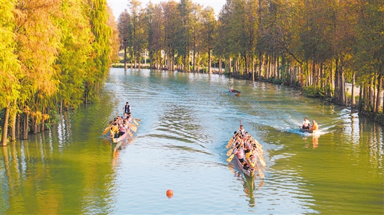 最后,冠军团队成员来到长廊生态园。这座集农业观光、科普研学、商务会务、机动游乐等多种业态于一体的园区,近年来凭借龙舟体验、围炉煮茶、“奇幻森林”等特色项目受到广泛关注。在园区游乐设施区,海盗船、丛林飞鼠等十余项大型机动项目让冠军团队成员大呼过瘾。大家纷纷表示,此次文旅体验既放松了身心,也感受到地方文化特色与现代休闲娱乐的完美融合。