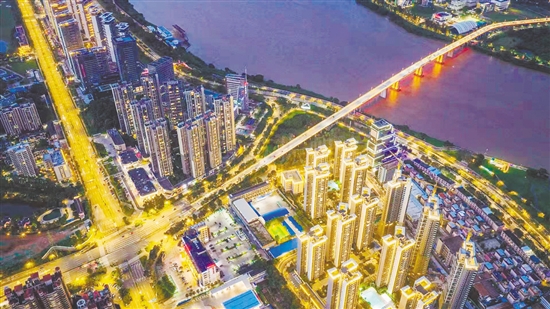 江门成为省内第7座进入“供电可靠性1小时朋友圈”的城市。图为江门主城区的夜晚灯火璀璨。 苏振帆 摄