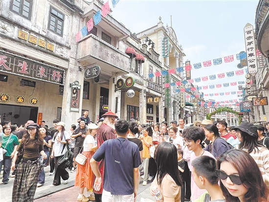赤坎华侨古镇成为假期文旅“顶流”。600余座骑楼被万株鲜花装点成七彩画卷,微风拂过,芬芳漫溢。“这里场地宽敞、门票实惠,音乐剧和烟火表演让人目不暇接!”香港游客庞小姐漫步街巷,不时驻足拍照留念。为吸引港澳台同胞及海外侨胞,赤坎华侨古镇特别推出99元的“温暖回乡票”。此外,打铁花、非遗杂技等百场演出轮番登场,骑楼街巷变身文化秀场,让游客在赏景之余感受侨乡文化底蕴。
