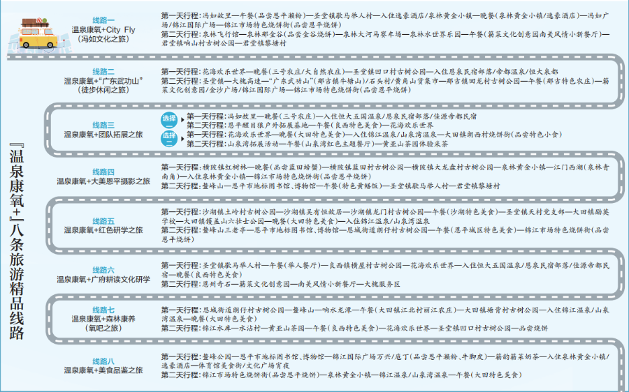 开幕式上,恩平市发布了“温泉康氧+”八条旅游精品线路,为前来旅游度假的游客提供了绝佳的恩平旅游指南。同时,恩平市文广旅体局与澳门恩平同乡会签订文化旅游交流合作协议;与广东省青旅会签订千团万人来恩平温泉之旅合作框架协议,广东省青旅会将持续组织旅游团来恩平观光、旅游、消费,从而带动恩平旅游业、服务业发展;与江门市旅游协会签订十万人游恩平战略合作协议,为壮大恩平文旅经济提供“助推剂”。此外,恩平City Ride骑行推广大使授牌仪式在开幕式上举行,旨在通过骑行推广带动更多人用车轮丈量恩平,感受“中国天然氧吧·冯如故里·温泉之乡”的独特魅力。