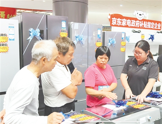 2025年“乐购恩平、畅游恩州”消费季活动涵盖房地产、汽车、摩托车、家电、超市、餐饮、景区、特色农产品、电声器材等多个领域。当天的家电展区吸引不少市民前来咨询。 周晓营 摄