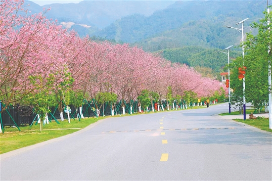 鹤城镇城西村引导杰出乡亲捐资4000万元建设1.2公里的樱花大道。