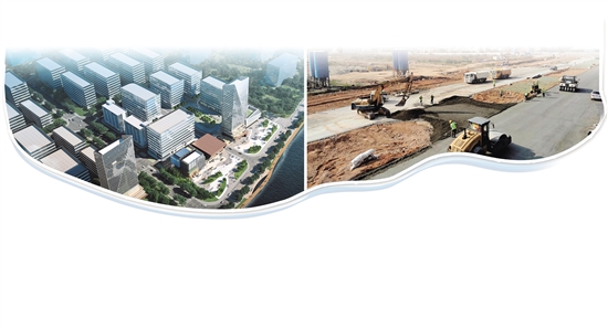 左图:深圳科技园江门园区项目效果图。 右图:振兴大道建设现场。