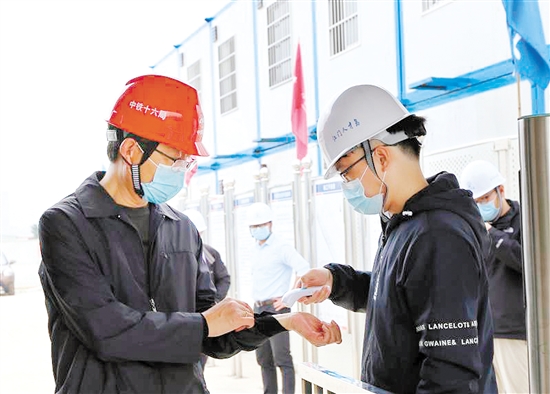 “今年过年我们整个班组没有回家,疫情发生期间我们也一直居家隔离,所以复工信息一发出,我们马上就能回到建设现场。”五工区一线排水安装人员田井祥表示,在开工前,政府还派人召开复工会议,向所有一线职工明确提出班前防护、生活防疫、生活出行、宿舍生活区居住要求等注意事项。“大家陆续回来复工,建设效率也逐渐提高,希望未来几天天气晴好,也希望疫情快点过去,早日恢复正常生产。”田井祥说。
