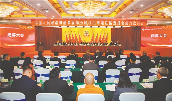 江门日报讯 (记者/任佳燕 何榕) 中国人民政治协商会议第五届江门市蓬江区委员会第六次会议圆满完成各项议程,于2月11日下午胜利闭幕。会议号召,区政协组织、各参加单位和全体委员,要更加紧密地团结在以习近平同志为核心的中共中央周围,在中共江门市蓬江区委的坚强领导下,锚定“开好局、起好步”的目标,以协商有方、监督有力、参政有为的扎实履职,为奋力跑好蓬江“十五五”关键时期第一程,不断开创中国式现代化建设的蓬江实践新局面作出政协新的更大贡献!