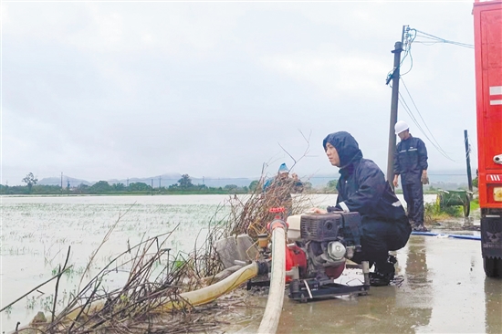 全力抢排田间积水是一项紧急任务。为此,各镇(街)、有关部门单位迅速组织力量,在暴雨中深入田间地头,挖沟、排水,防止形成渍害。水利、城管等部门调配8台移动抽水机支援受浸严重的镇(街),台山市应急管理局应急救援大队紧急出动30名队员携带装备工具,奔赴斗山、冲蒌、海宴等镇执行抢险排涝任务。镇村党员干部冲在一线,带领群众开闸排水,抢险自救。