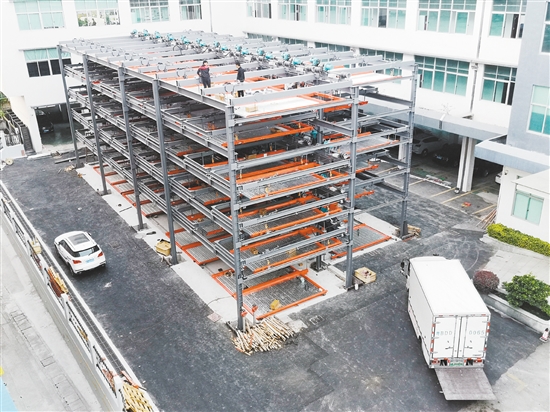 记者昨日来到施工现场看见,立体停车场已完成钢结构框架搭建,正在加快进行设备安装,本月内可投入使用。