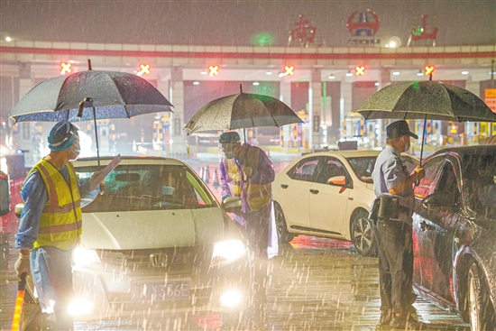 风雨之夜,医护人员细致而又熟练的动作,志愿者们热情周到的服务,群众在风雨中撑伞等待的身影,构成了一幅最美的同心抗疫画卷。