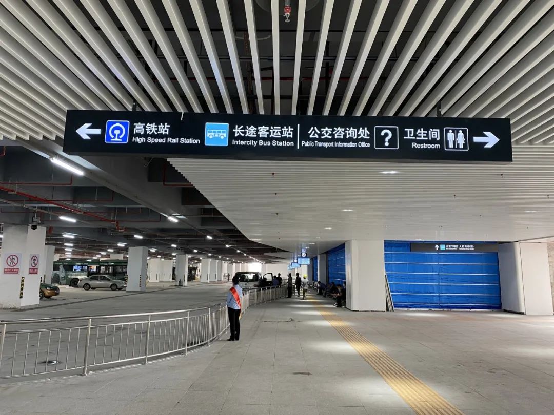 公交站场位于江门站的南侧,使用面积4.09万㎡,配套发车卡位13个、落客卡位9个、公交充电桩13个。公交站场共有两层,其中一层是公交上客区,二层是公交下客区,公交车直接开到站房区域,乘客下车可直接进站。