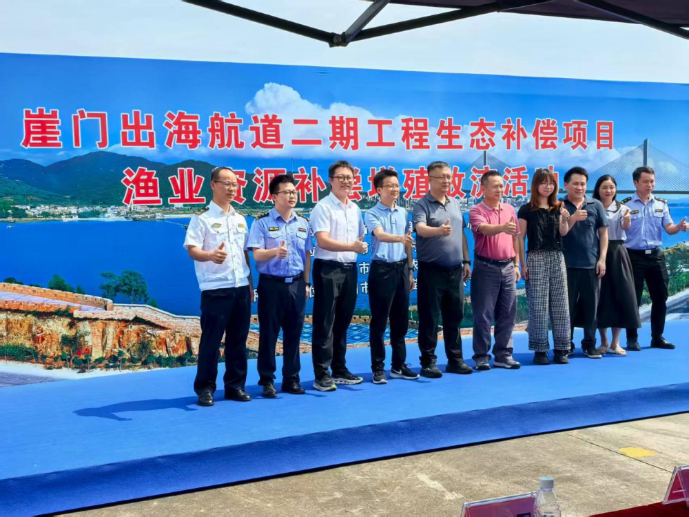 8月1日,市海洋综合执法支队到新会区崖门镇参加崖门出海航道二期工程生态补偿项目渔业资源补偿增殖放流活动。