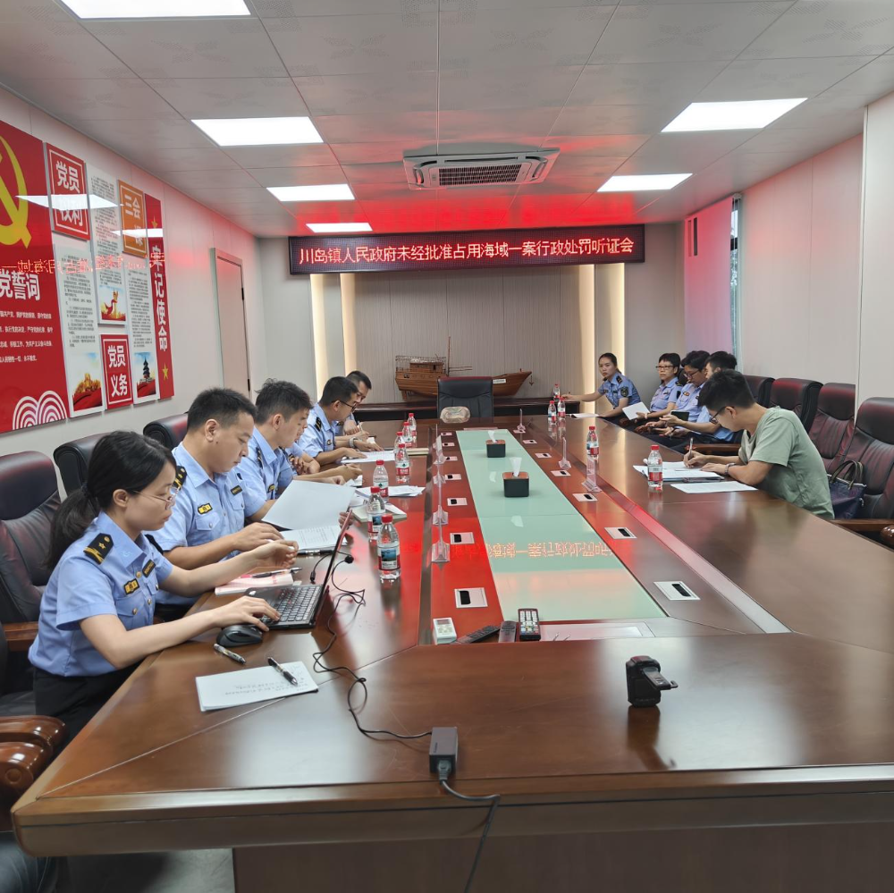 8月5日,省总队直属二支队、市海洋综合执法支队到台山市参加某单位未经批准占用海域一案行政处罚听证会。