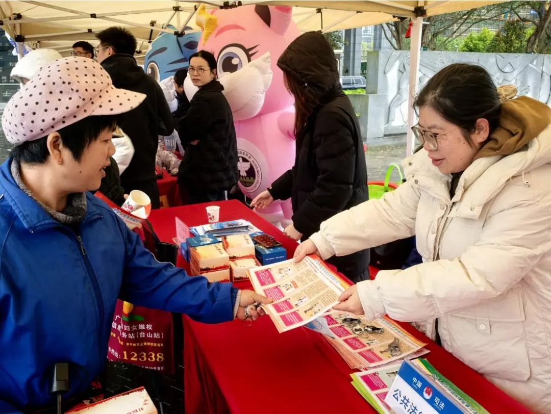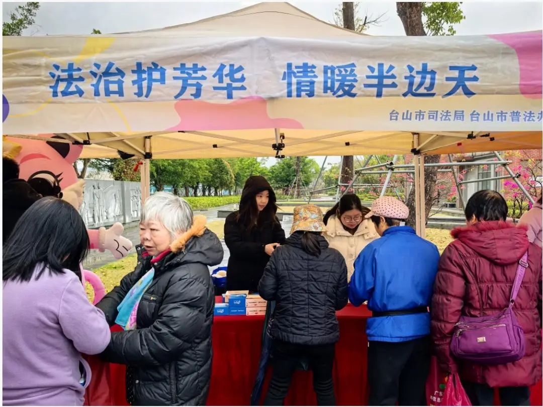 3月6日,台山市司法局在华侨博物馆广场开展“法治护芳华 情暖半边天”法治宣传活动,以专业力量传递法治温度,为妇女群众献上别样的节日礼物。活动现场,普法志愿者向群众派发《中华人民共和国民法典》、《中华人民共和国反家庭暴力法》、《中华人民共和国法律援助法》等宣传资料,并对群众提出的法律疑问作出解答。