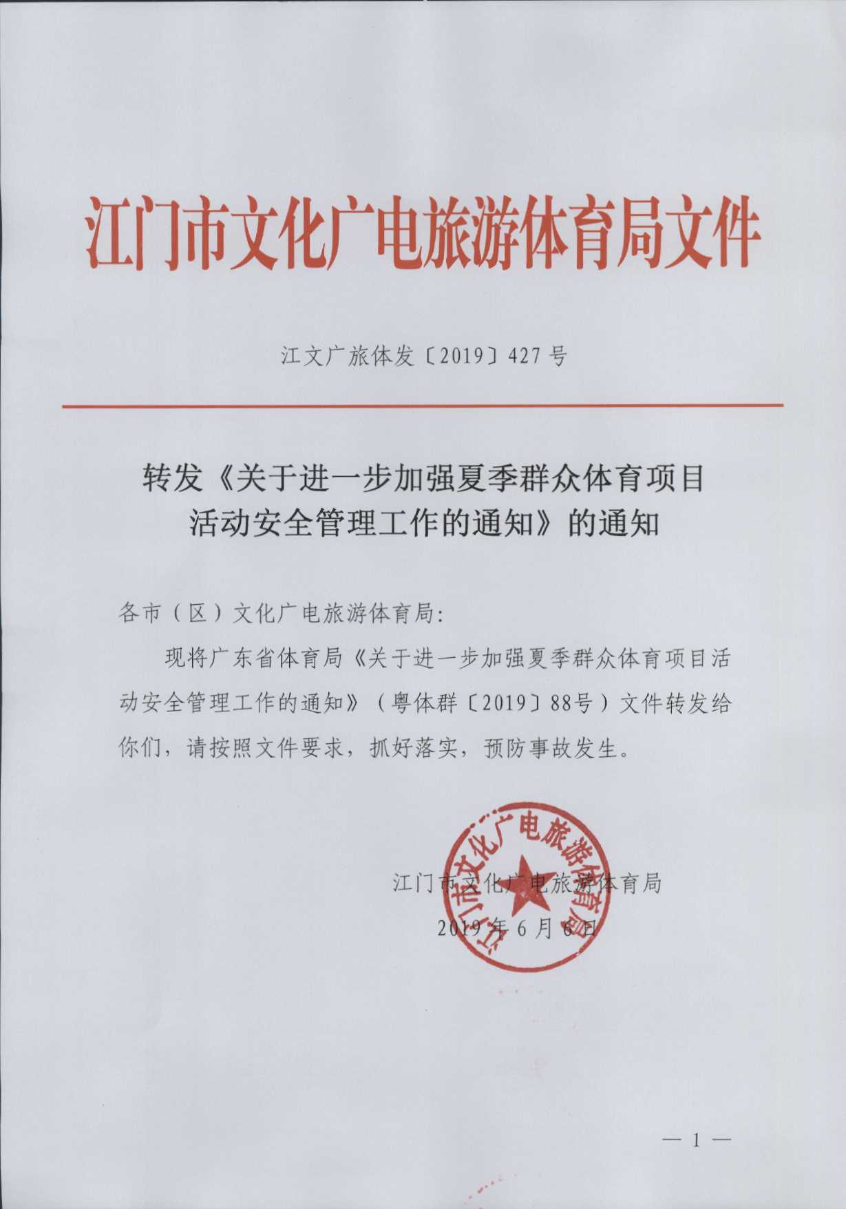 转发《关于进一步加强夏季群众体育项目活动安全管理工作的通知》的通知