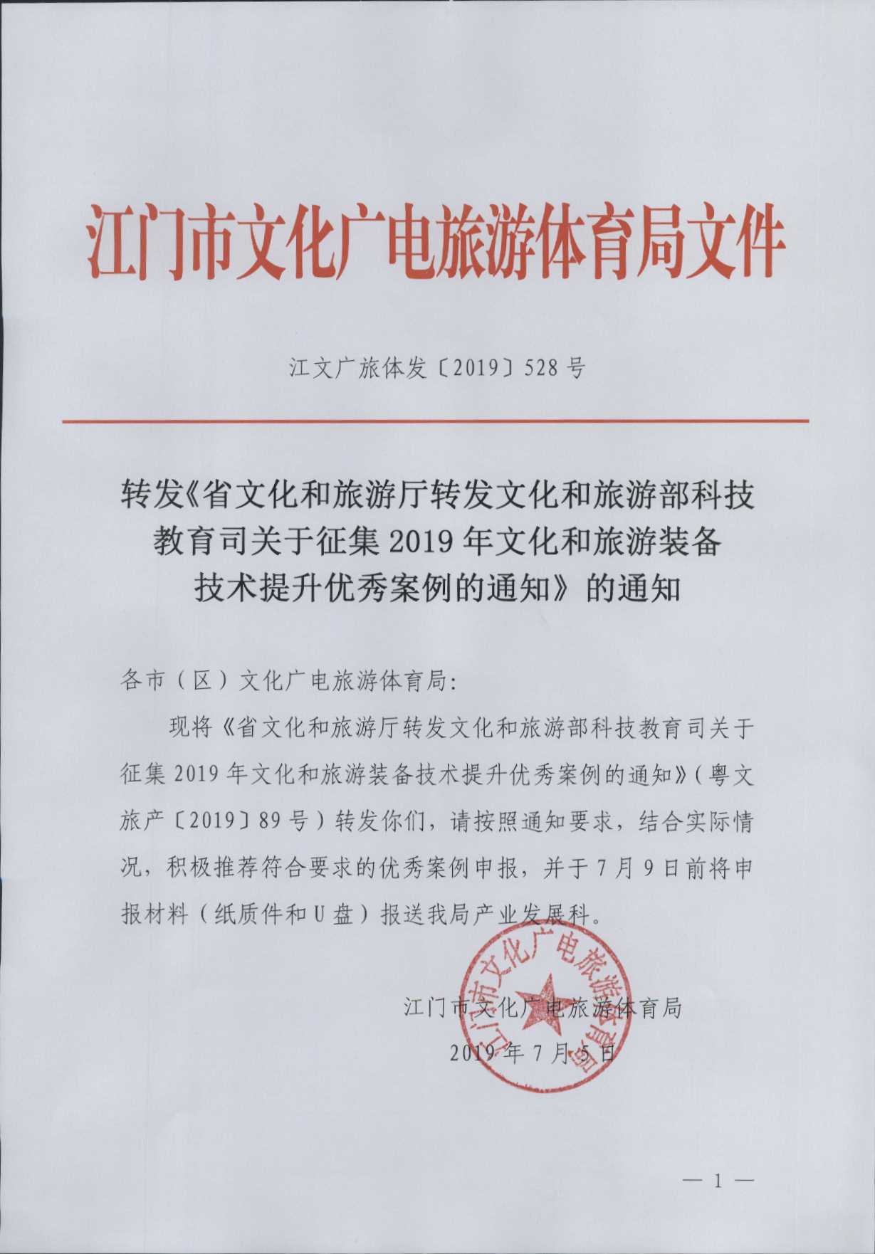 省文化和旅游厅转发文化和旅游部科技教育司关于征集2019年文化和旅游装备技术提升优秀案例的通知