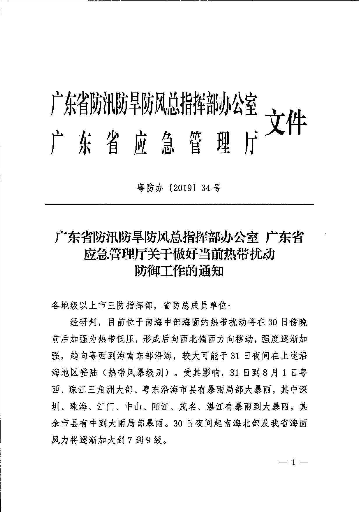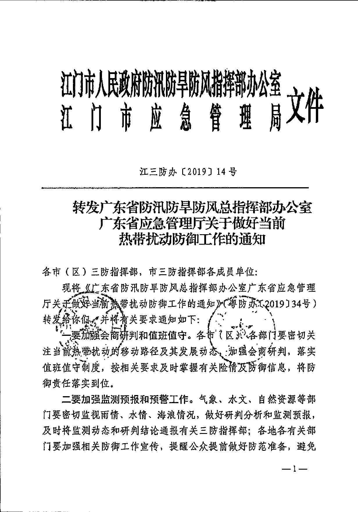 转发江门市人民政府防汛防旱防风指挥部办公室江门市应急管理局《转发广东省防汛防旱总指挥部办公室广东省应急管理厅关于做好当前热带扰动防御工作的通知》的通知