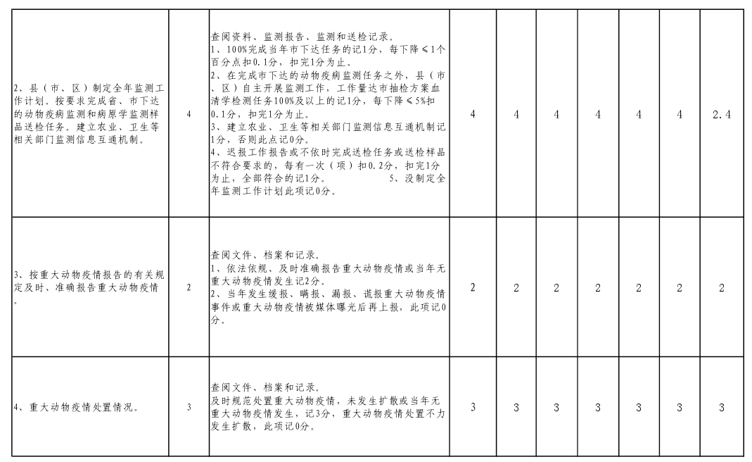 动物疫病工作量化考评情况的通报