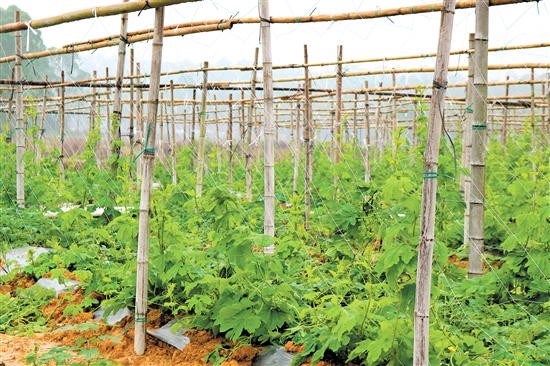 恩平市沙湖镇的杜阮凉瓜种植基地里,凉瓜长势喜人。