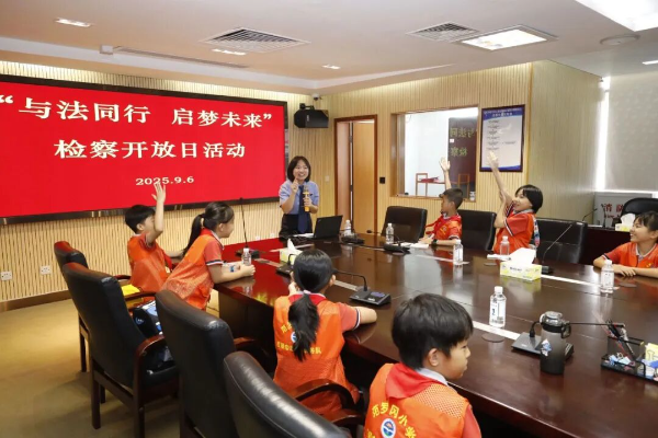 近日,蓬江区人民检察院和蓬江区禁毒办邀请20名江门日报青苹果小记者、蓬江区范罗冈滨江小学师生代表参加“与法同行 启梦未来”主题活动,体验检察官的办案环境和日常工作,深入了解各项检察工作流程和职能,并通过讲解互动提高防毒拒毒意识,营造未成年人学法、懂法、守法、用法的良好氛围。