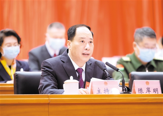市委书记,市人大常委会党组书记、主任,大会主席团常务主席陈岸明主持开幕大会。市长吴晓晖代表市人民政府向大会作政府工作报告及民生实事候选项目说明。