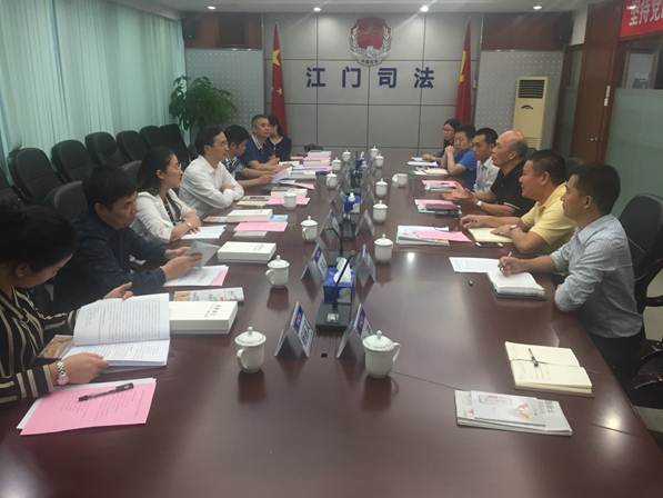 江门市司法局、市律师协会分别与梧州市司法局考察组召开座谈交流会,市司法局党组成员、副局长黄宇光介绍了全市司法行政工作的基本情况,尤其是近年来在开展律师党建工作、律师事务所规范化建设管理、一村(社区)一法律顾问工作、公共法律服务体系建设中的做法以及所取得的成绩。市律师协会李静染会长介绍了市律师协会换届以来在稳定发展律师队伍、加大力度培养年轻律师、推进律师积极参与村(社区)法律顾问、刑事辩护全覆盖、扫黑除恶、参政议政,加大宣传等方面的工作情况。两地就法律援助、人民调解、司法行政信息化建设、律师协会建设、保障律师执业权利等方面进行了深入交流。