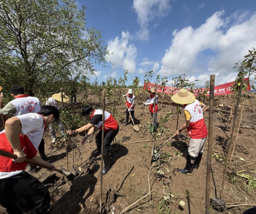 5月22日上午,市生态环境局台山分局联合台山市广海镇人民政府到广海镇烽火角开展“5.22国际生物多样性日”主题宣传活动暨“万物共生 和美永续”红树林植树活动,活动分两组,20余名志愿者参加活动。