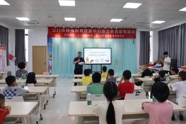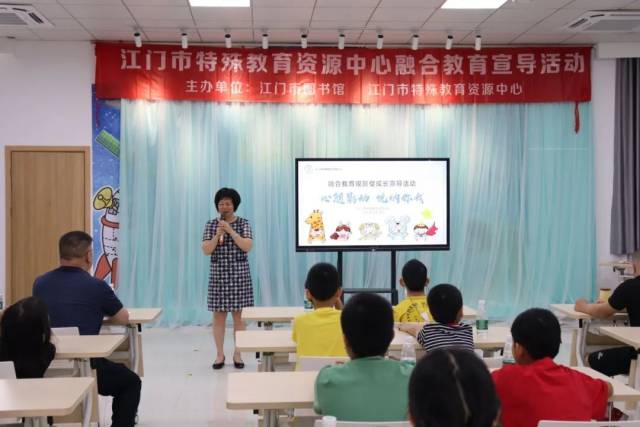 5月18日上午,在“全国助残日”之际,江门市图书馆联合江门市特殊教育资源中心共同举办了“心随‘影’动 悦纳你我——融合教育观影促成长宣导活动”。江门市图书馆馆长麦旭辉、江门市特殊教育资源中心主任邝俭玲、江门市蓬江区发展小学学生代表、孤独症儿童代表及家长等六十余人到场参与。