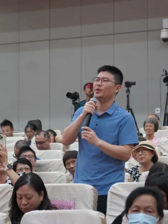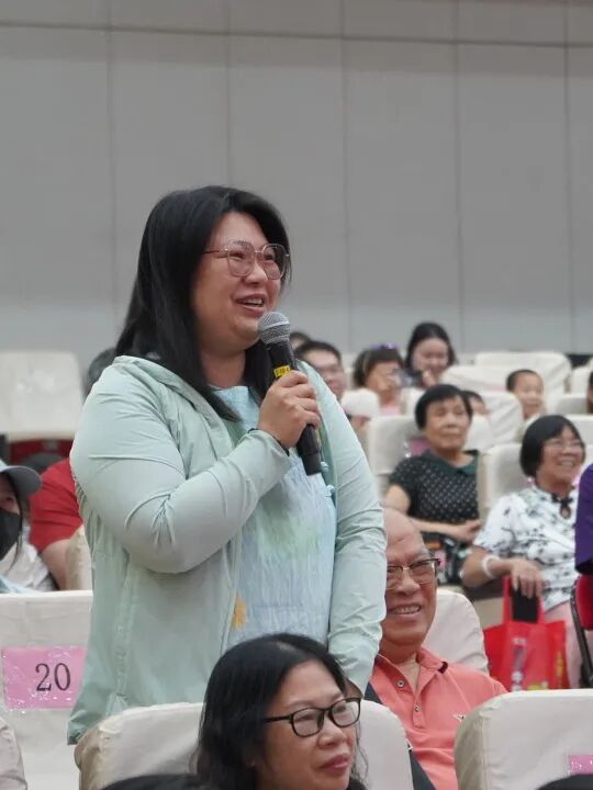 活动互动环节亦引发观众热情,大家踊跃举手,争取与偶像近距离对话的机会。有观众提问:“黄老师88岁高龄仍声线很靓、精神很好,保养秘诀是什么?”黄老师幽默答复:“不吸烟、少喝酒,多跟年轻人做朋友。”还有观众问到:“现在中小学教育以普通话为主,很多本土青少年儿童讲不好粤语甚至不会讲粤语,在此情况下如何提高小朋友对粤语的热爱及传承?”黄老师真诚发声:“粤语传承需从娃娃抓起,要在家庭生活中进行语言同化,每一对父母都有责任将粤语传承下去。”而无论是接受访谈还是与观众互动交流,黄俊英老师全程坚持用粤语对话,身体力行传承粤语文化,展现了老一辈艺术家所富有的文化担当和艺术情怀。