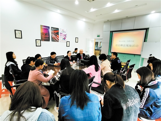 今年3月,鹤山法院的法官们送法进企业,引导企业依法管理、诚信经营,并引导职工依法维权。