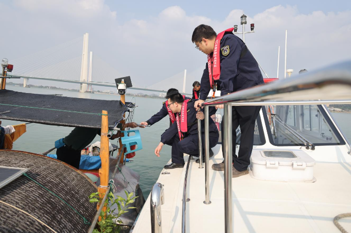 2月26日,市海洋综合执法支队在西江水域开展执法巡查,检查涉渔船舶2艘并向从业人员派发宣传单张。