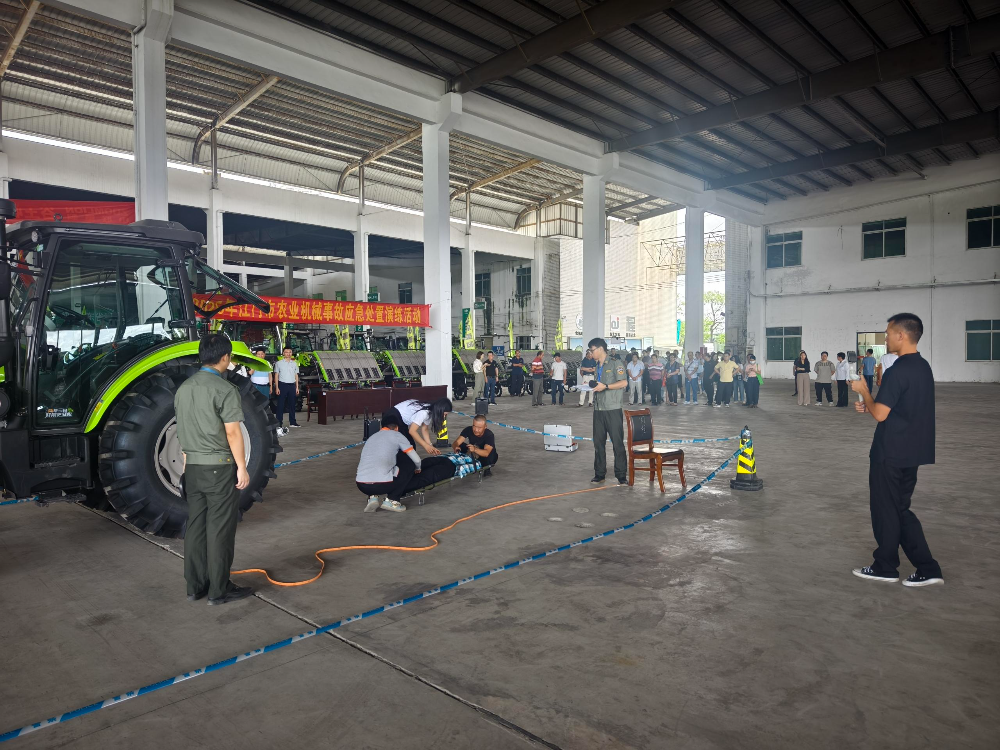 江门市农业农村局联合各县(市、区)农机安监人员和农民代表,模拟开展了一场逼真的农机应急事故处置演练。演练设定案情为一台大中型拖拉机在田间作业中倒车碰撞一男子并造成该男子受伤的农机事故,农机安全监理部门在接到报案后,按照《农业机械安全监督管理条例》《农业机械事故处理办法》等法律法规,开展事故报案、警戒管制、医疗救护、现场勘查、事故认定、调解赔偿、保险理赔等环节演练。