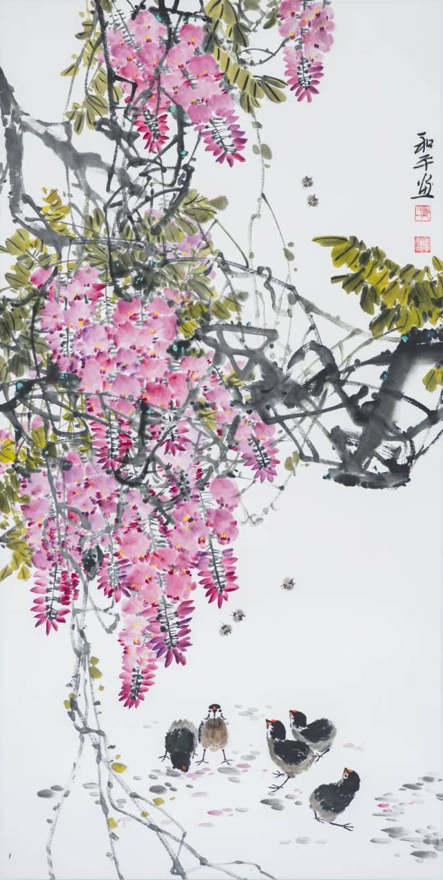 《花鸟二》 邓和平 137cm × 69cm 中国画 2022年
