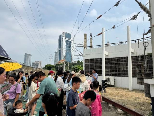 活动伊始,五邑大学轨道交通学院成利刚老师带领亲子家庭开启了一场生动的“探秘之旅”。在老师的细致讲解下,孩子们走进学院的专业场地,看到了东风1985、SS3型电力机车、和谐号等轨道列车,通过实物展示及专业解析,了解了轨道交通的发展历程、技术原理以及在国家经济社会发展中的重要作用。老师深入浅出的讲解,将复杂的专业知识转化为孩子们能理解的语言,将轨道交通知识与“交通强国战略”巧妙联结,不仅激发了大家对轨道交通领域的浓厚兴趣,更让孩子们在具象化的认知中逐步理解这一国家战略的意义。