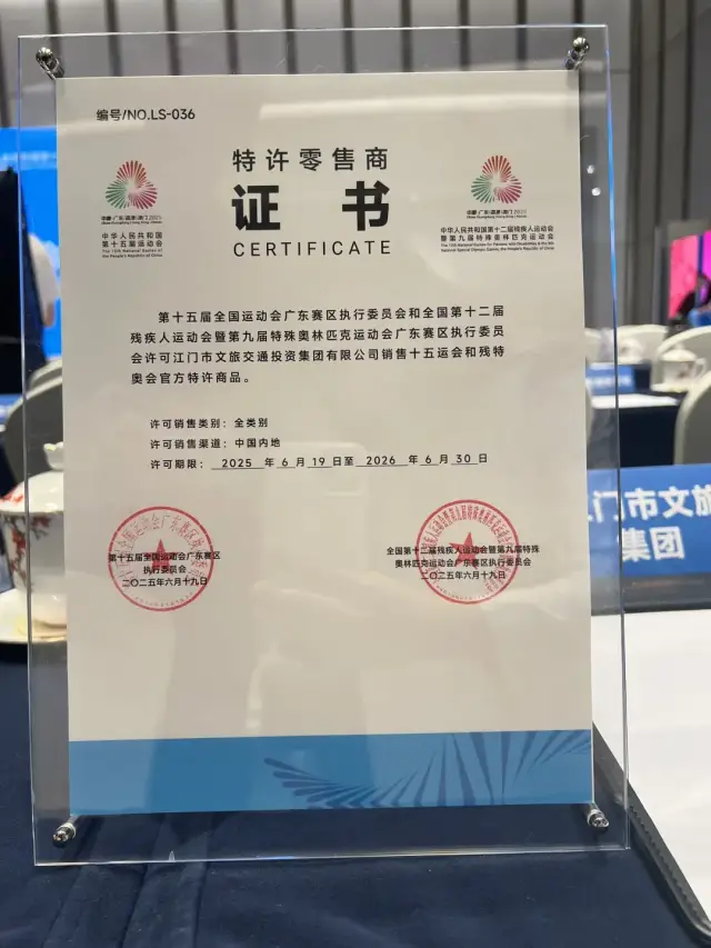 江门文旅交通集团相关负责人表示:“我们非常荣幸能够成为十五运会和残特奥会的特许零售商,这不仅是对我们综合实力的认可,更是一份责任。我们将以高品质的服务和新颖的营销模式,为市民和游客打造沉浸式的消费体验,共享体育盛事带来的欢乐。”