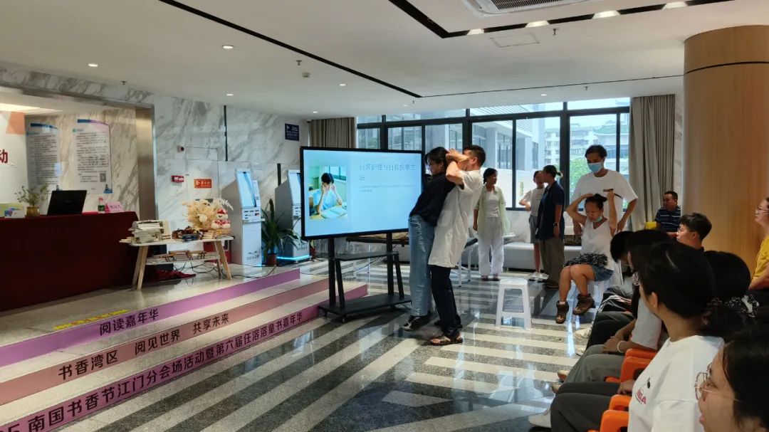 为了让大家将所学的知识转化为实际行动,周老师化身“教练”,带领读者们一起动起来。他现场教授了一些简单易学的护脊健脑小妙招,如颈部拉伸、肩部放松、腰部扭转等。这些小妙招不需要任何器械,随时随地都可以进行,非常适合学生们在课间或休息时间练习。在周老师的带领下,大家纷纷起身,跟着他的动作认真练习,现场气氛热烈,充满了活力和欢声笑语。